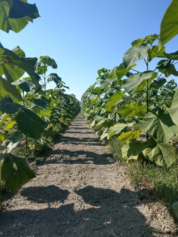 ist eine Hybride aus Tomentosa und Fortunei, bildet gutes Holz und wächst rasant. In Griechenland haben wie im ersten Jahr über 4 m erreicht und nach Rückschnitt bis zum Erdboden, im zweiten Jahr, über 7 m.